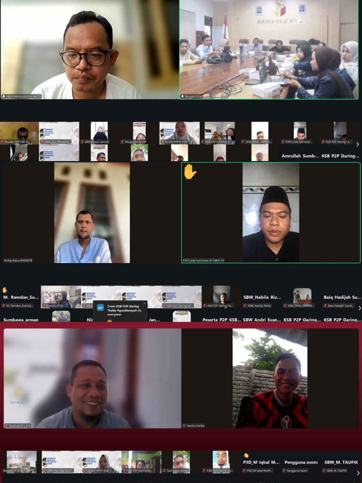 Platform daring yang digunakan memungkinkan peserta menyimak paparan secara langsung, berdiskusi, serta mengakses kembali catatan atau materi yang dibagikan. Bagi Bawaslu NTB, metode ini terbukti efektif dalam memastikan kapasitas kader dapat diperkuat secara merata meskipun jarak antarwilayah cukup jauh.